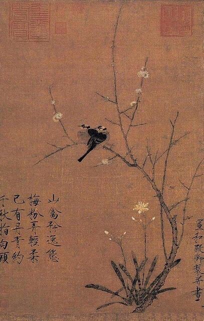 读画系列之徽宗《腊梅山禽图》