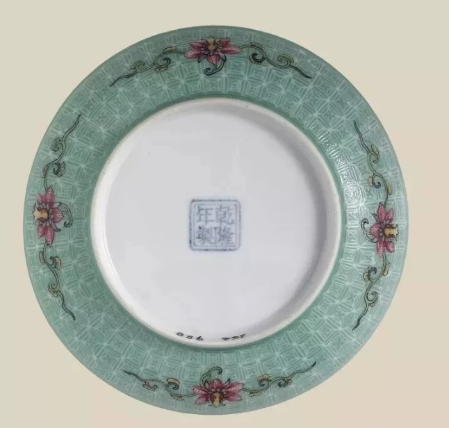 雍正珐琅彩瓷器的外底均署年款,以蓝料彩“雍正年制”四字双行宋錾体印章式款最为多见,款外围以双方框,框线外粗内细,极其规整,很像是用刻好的图章印上去的。也有少数器物署上述同式款,但无边栏。雍正珐琅彩瓷器也有署青花款的,所见有“雍正御制”四字双行外围双方框和“大清雍正年制”六字双行外围双圆圈。青花款只能在施釉前书写在瓷胎上。2002年香港佳士得拍卖一件雍正蓝地珐琅彩花卉纹“万寿长春”浅碗,四字分别题写于外壁四个花朵的中心,外底青花双方栏内署“雍正御制”四字双行款。 乾隆时期珐琅彩瓷器的艺术水平总的来说要逊于雍正时期,这或许与宫廷珐琅作内人员更替和缺乏有关。据造办处档案记载,“乾隆元年三月十七日,首领吴书来说:乾清宫总管苏培盛交小太监何德禄、王成祥、杨如福、魏青奇四名。传旨:着给珐琅作学烧珐琅。钦此”。“乾隆元年四月十四日,催总默参峨为画珐琅人不足用,另欲将画珐琅人张维奇情愿进内当差,照例行取银粮,每月工食银五两,二、八月衣服银十八两,回明内大臣海望、监察御史沈嵛、员外郎三音保准行。记此,这两则资料说明,乾隆元年造办处珐琅作即因缺人而进新人。 乾隆时珐琅彩瓷器所用白瓷胎仍由景德镇御窑厂提供。如造办处档案记载,“乾隆元年五月初二,太监毛团传旨:着海望寄信与员外郎唐英,另将烧造珐琅之白磁器烧造些来。钦此”。乾隆时期珐琅彩瓷器的彩绘和烘烧,大量的是在北京宫廷造办处的珐琅作内完成。但也有例外,如造办处档案记载,乾隆三年六月二十五日,太监高玉交磁器一百七十四件。传旨:交与烧造瓷器处唐英……再五彩珐琅五寸磁碟一件,五彩珐琅暗八磁碗一件,收小些,亦烧造。钦此”。很显然,上述五彩磁碟、磁碗是在景德镇御窑厂完成彩绘、烘烧这两道工序的。乾隆时期珐琅彩瓷器的装饰题材较雍正时更加丰富,除山水、花卉、花鸟外,还有中国或西洋人物,以及受西方“洛可可”艺术风格影响的各种洋花图案。新增的各种色地、色地开光、色地轧道珐琅彩瓷器,图案繁复,不留空白,不题写诗句。雍正时盛行的诗、书、画、印相结合的白地珐琅彩瓷,此时继续生产,所题诗句和所用闲章与雍正时大同小异。如画月季、竹石题“劲节亭亭千尺绿,芳枝长占四时春”。迎首用“翔彩”朱文闲章,句末用“彬然”白文闲章、君子”朱文闲章。