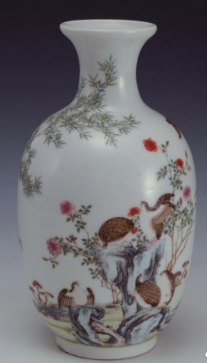 珐琅彩竹菊鹌鹑图瓶