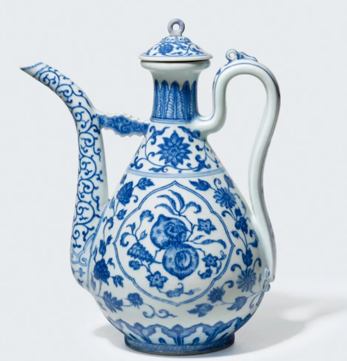 玉壶春瓶除瓷器外,亦有玉器、金银器,尤其是明清时期也有铜胎珐琅器等不同质地。玉壶春瓶在自身发展的同时,也会被其他器物所借鉴,如明清时期许多执壶,虽仿自阿拉伯银壶,但壶身呈玉壶春瓶样式,多了流、手柄和壶盖,因此也称作玉壶春执壶。